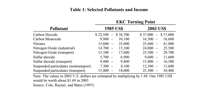I went to read the article by Yandle, Bhattarai, Vijayaraghavan. 2004. Environmental Kuznets Curves: A Review of Findings, Methods, and Policy Implications PERC Research Study