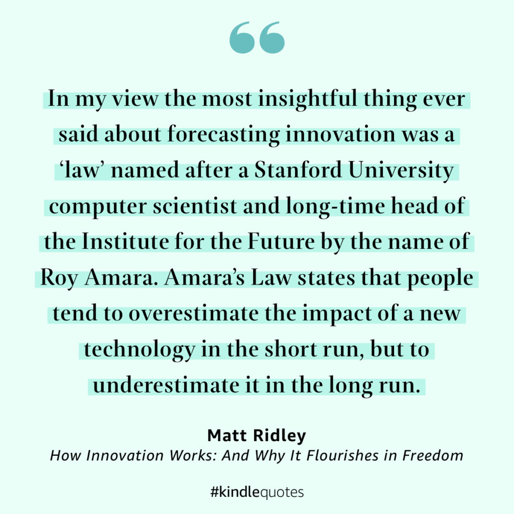 But I want to finish this post with another quote from Matt Ridley’s book, hoping that it applies also to my friend’s question: Amara’s law