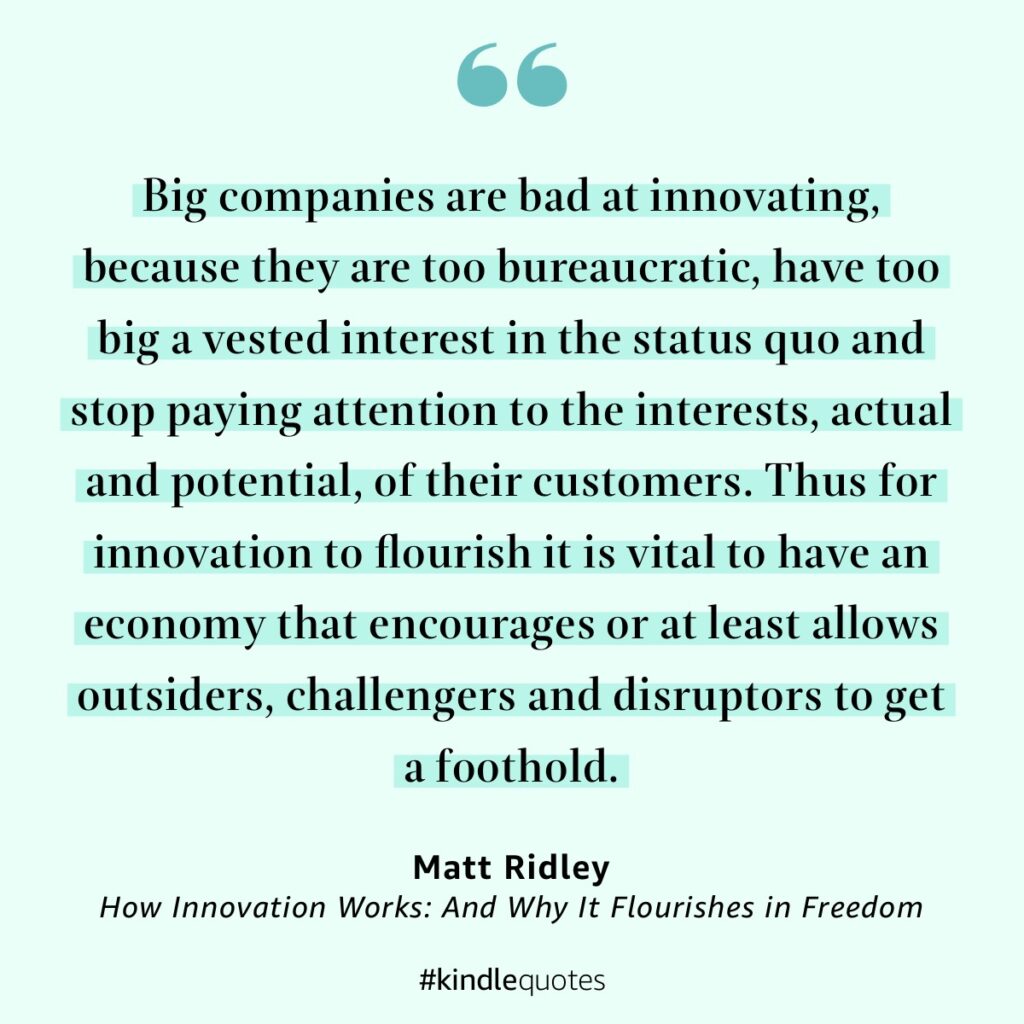 It was only when I finished reading Matt Ridley’s ‘How innovation works‘ that I had facts and the words to counter argue with these friends. I have posted some quotes from the book on twitter over my reading: